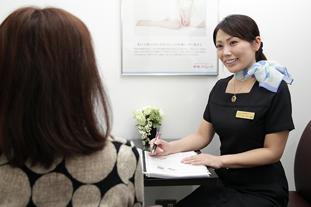 知識豊富な美容カウンセラーが、ご希望、ご要望に添えるように患者様お一人お一人に時間を掛けてカウンセリングいたします。